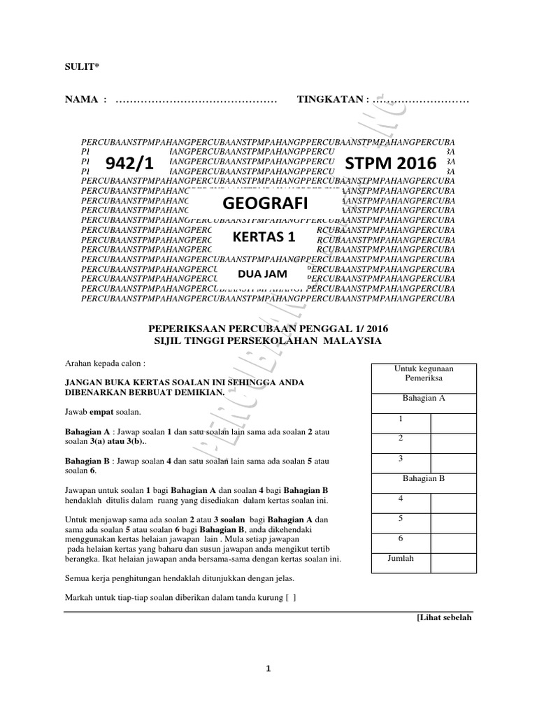 Share & embed soalan geografi percubaan stpm penggal 1 2014. **some of the material and image i take from google image**. 1 sebuah buku nota geografi stpm yang ringkas dan padat bagi penggal 2 sukatan baharu stpm bermula tahun 2013 untuk kegunaan pelajar dan guru tingkatan 6 atas. Soalan geografi percubaan stpm penggal 1 2014 by asmawi bin abdullah skema geografi percubaan stpm penggal 1 2014 by asmawi bin a. Ujian pa penggal 1 stpm 2018.