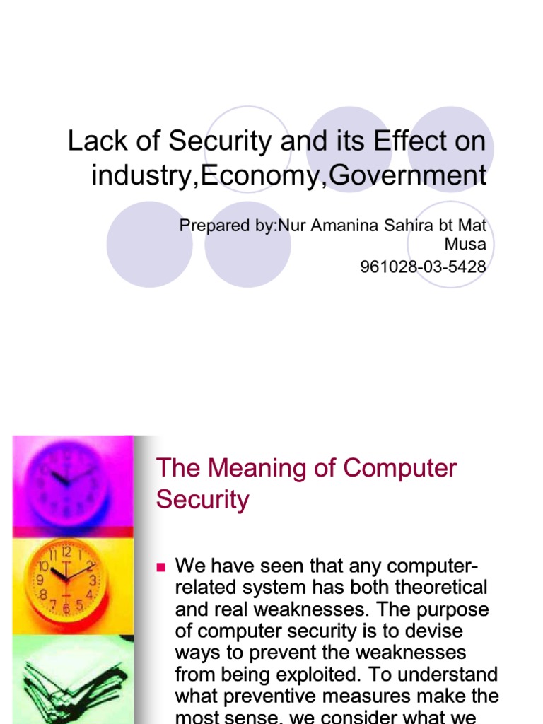 Powerpoint of lack of computer security and its effect on industryeconomy and government?